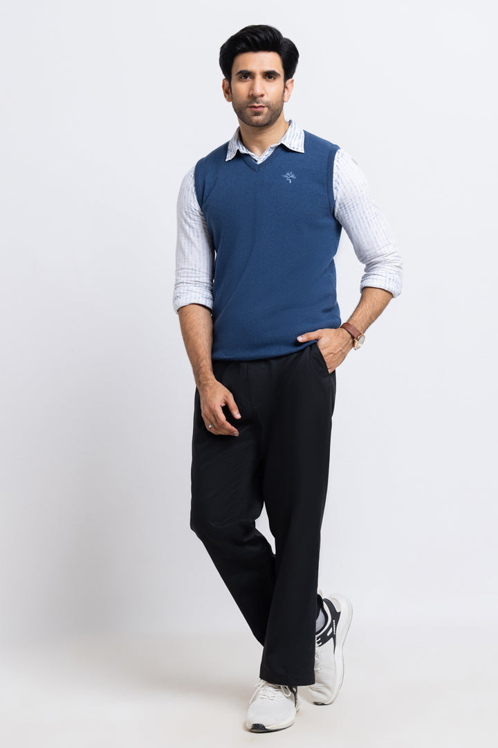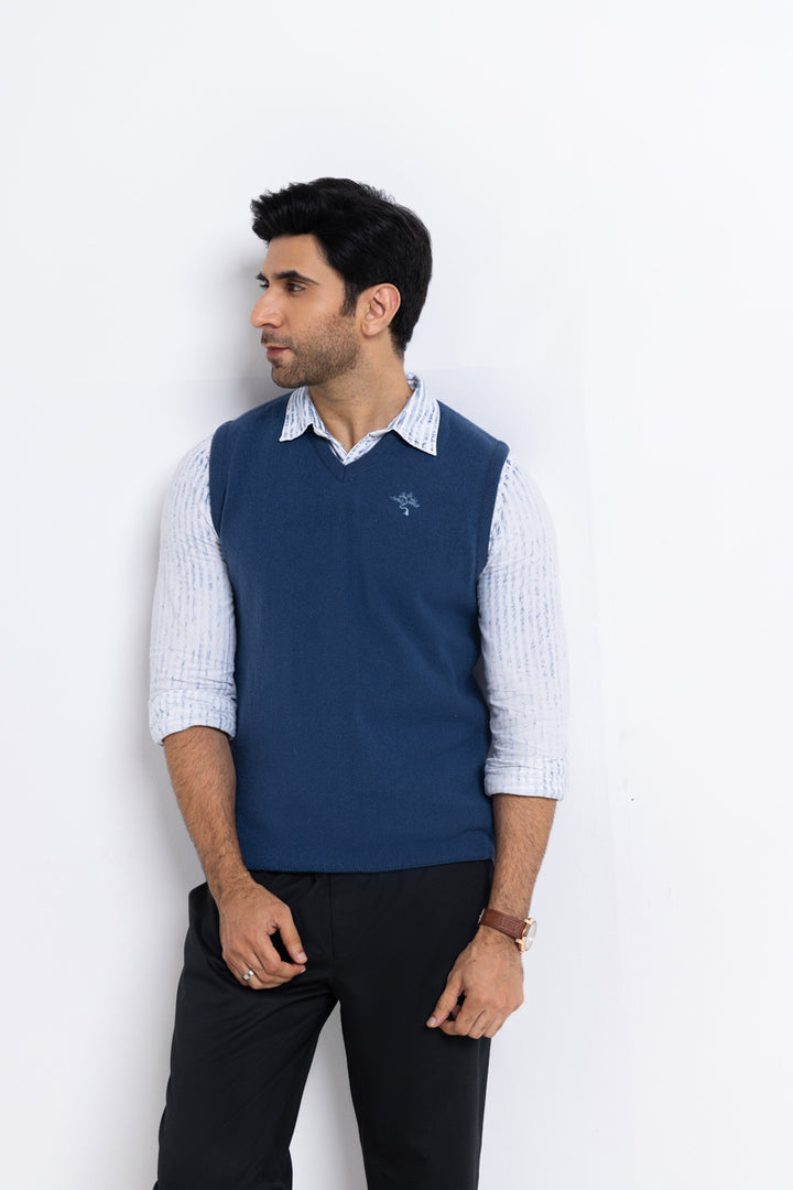 Blue-V-Neck Sando Sweater (651-14)