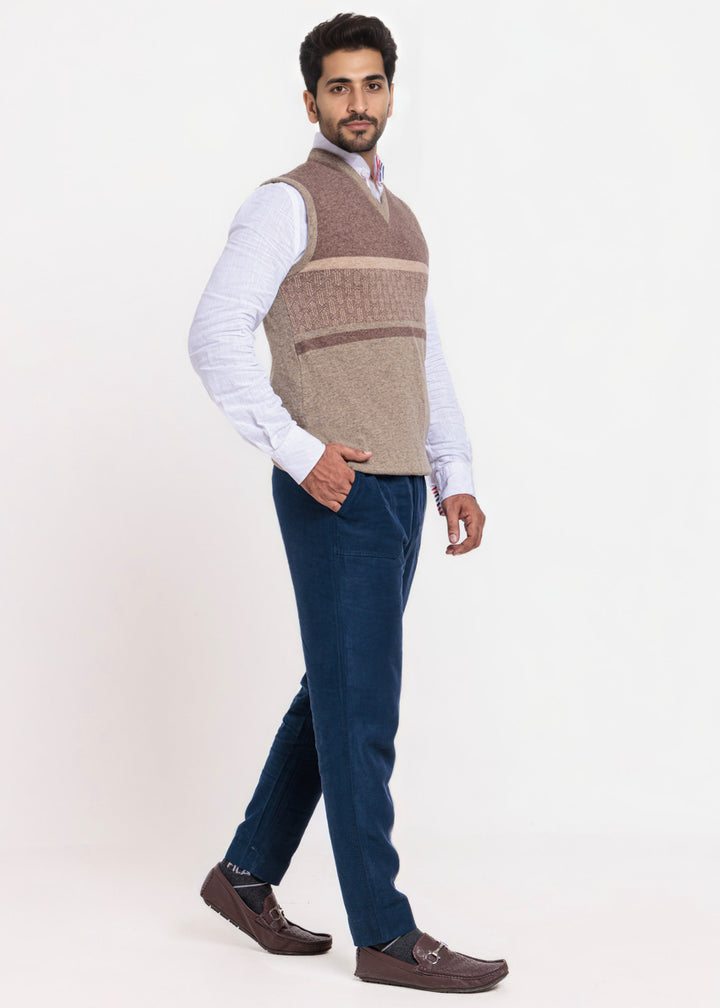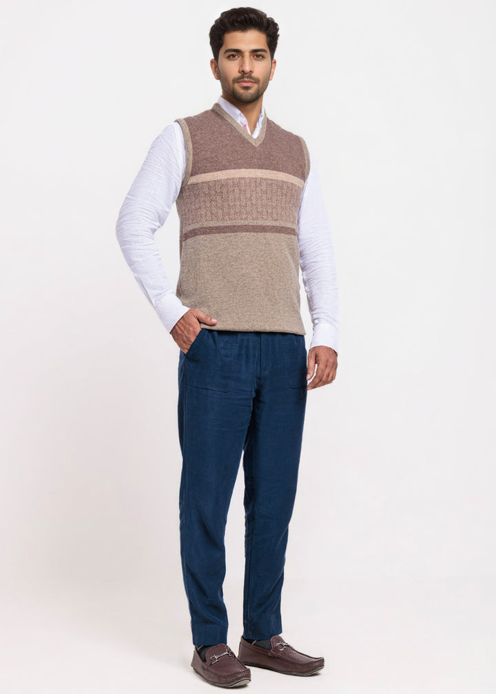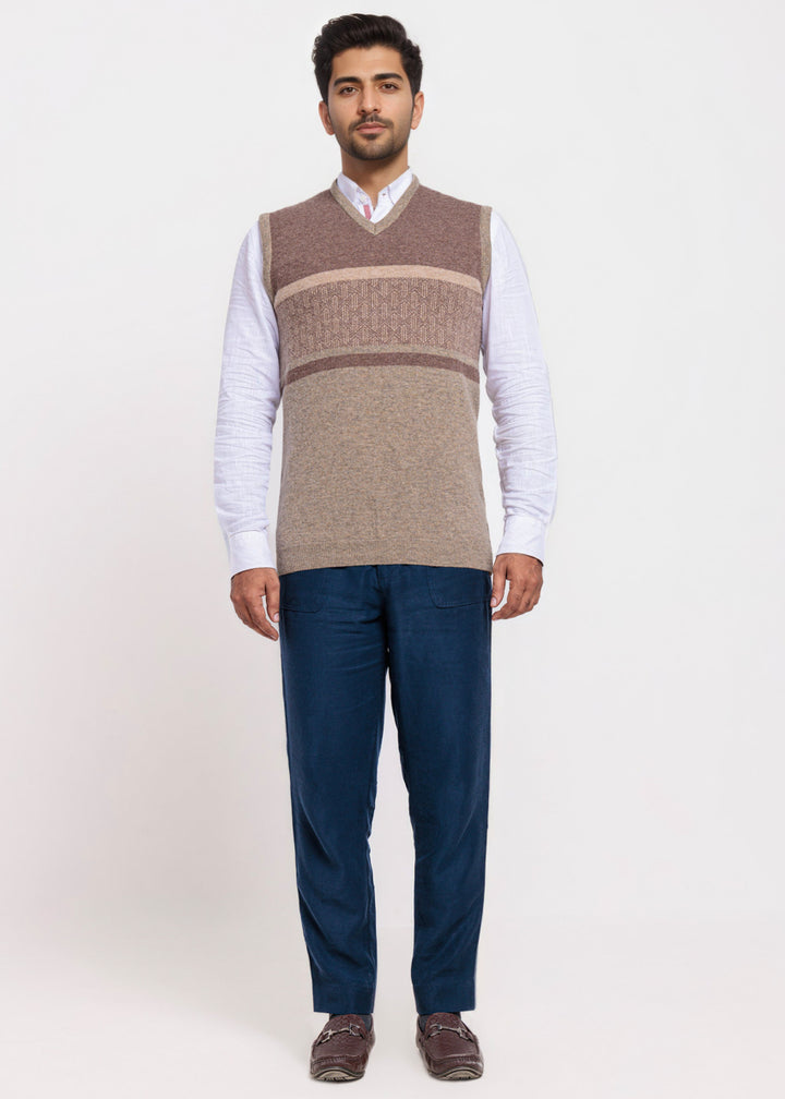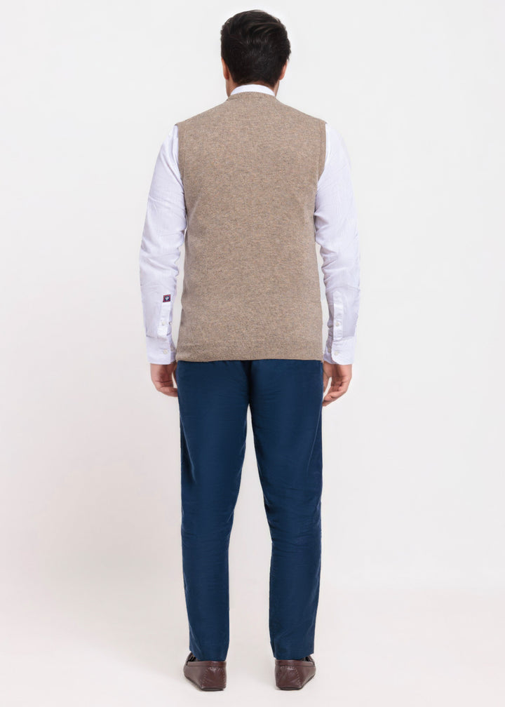 Nl-Beige-V-Neck Sando Sweater (662-14)