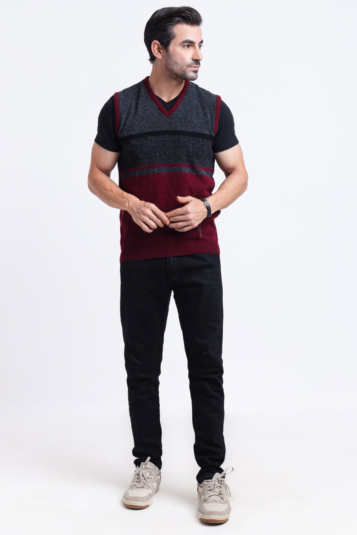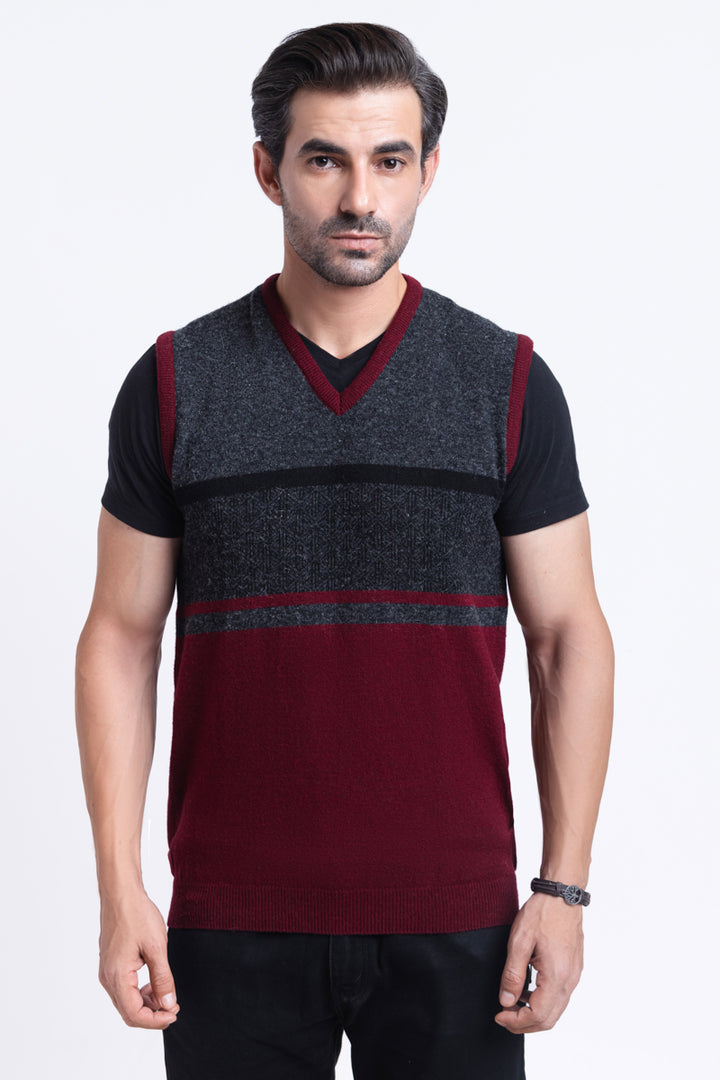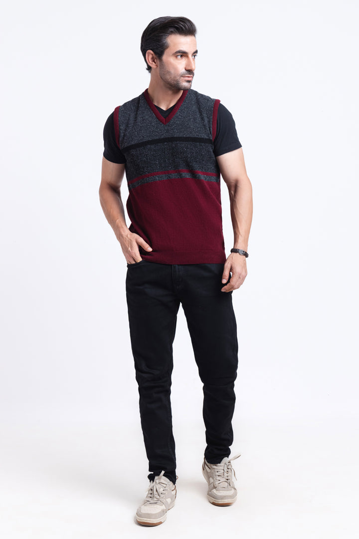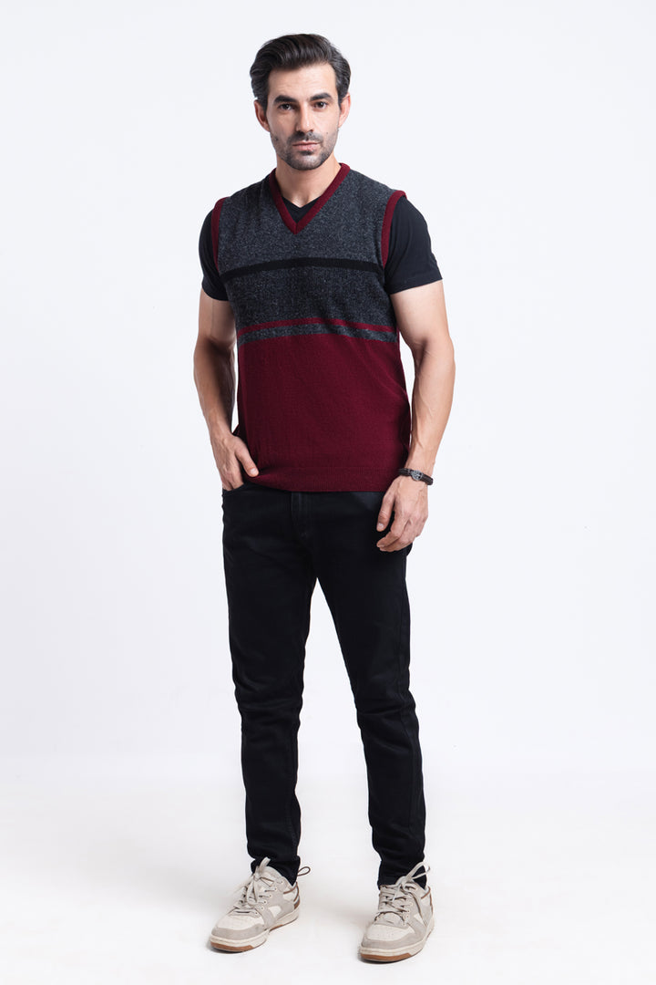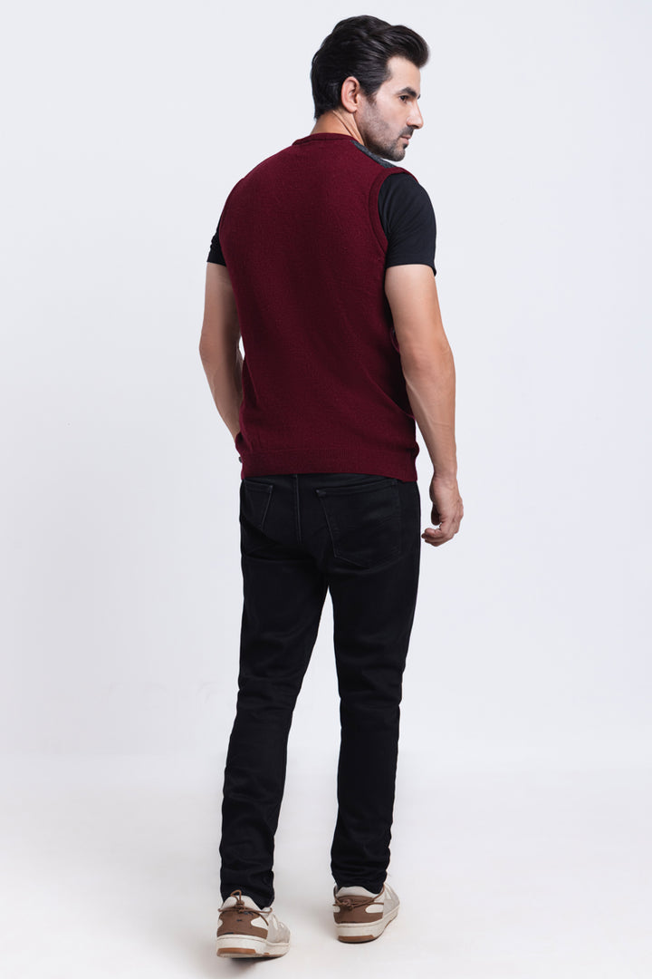O-Maroon-V-Neck Sando Sweater (662-14)