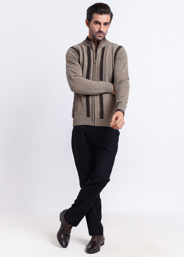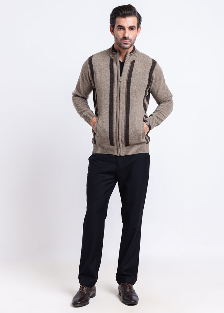 Nl-Beige-Turtle Neck Zipper Full Sleeves Sweater (753-14)
