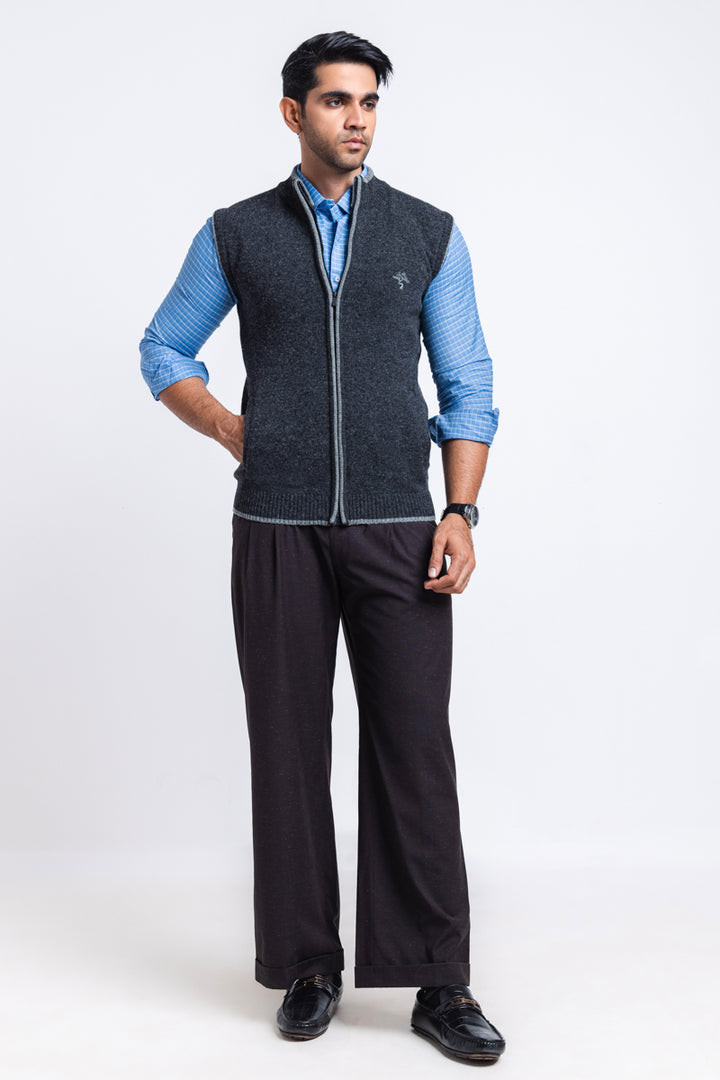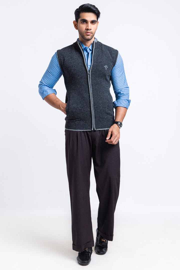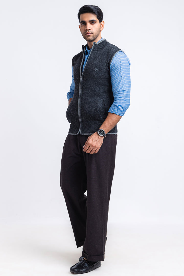 D-Black-Turtle Neck Zipper Sando Sweater (781-14)