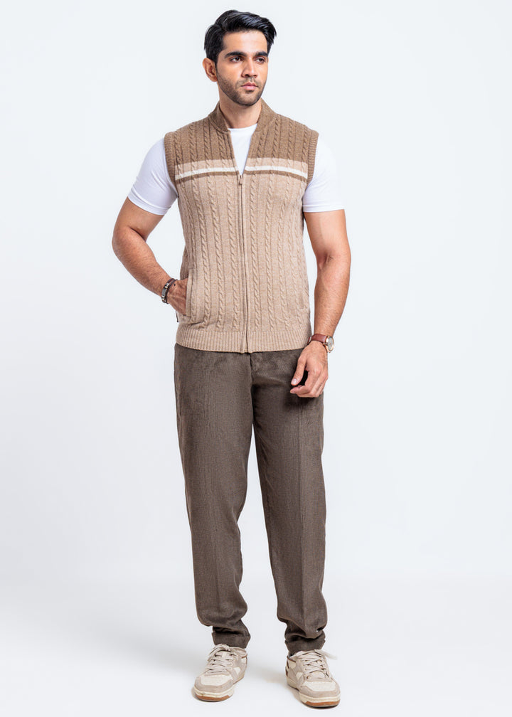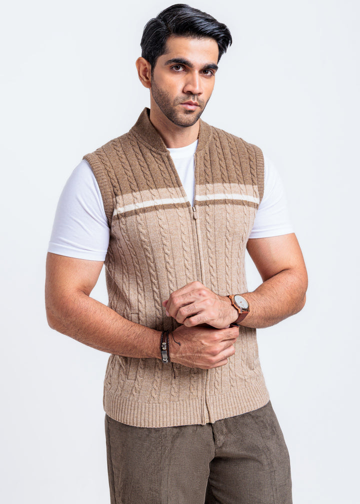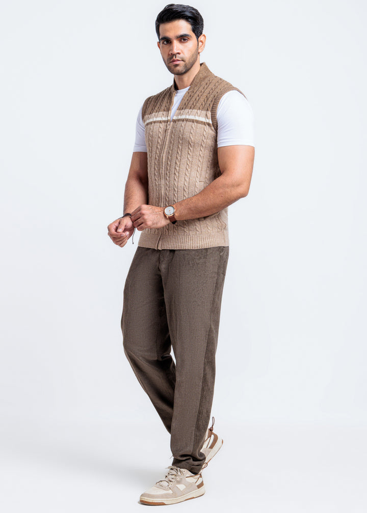 Mashroom-Baseball Collar Zipper Sando Sweater (784-14)