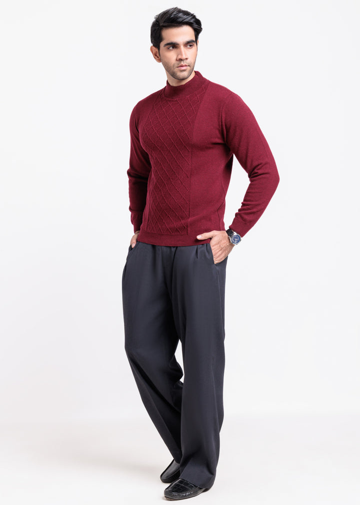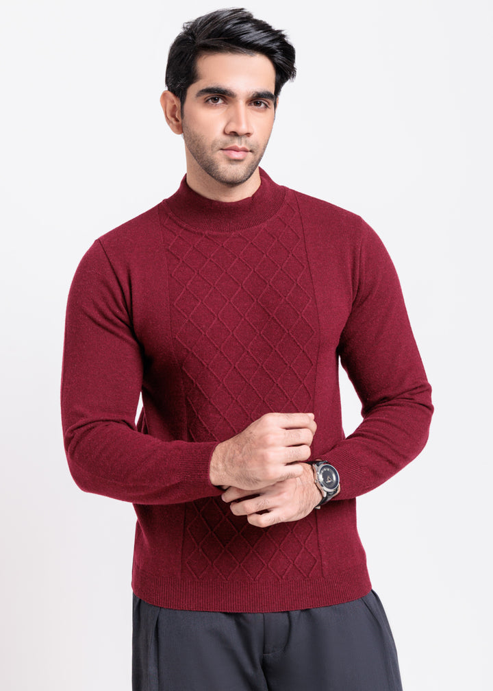 O-Maroon-Round Turtle Neck Full Sleeve Sweater (851-14)