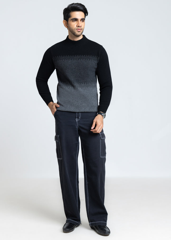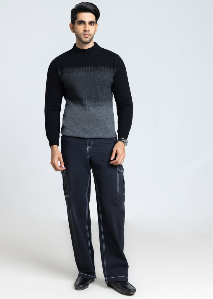 J-Black-Round Turtle Neck Full Sleeves Sweater (854-14)