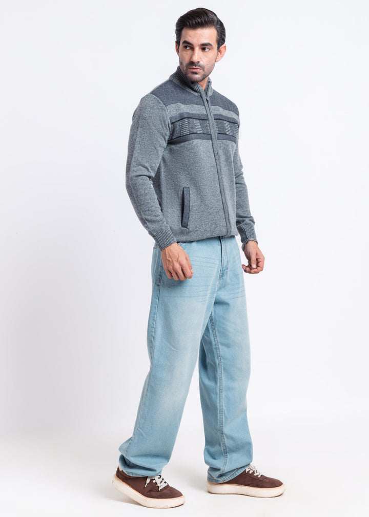 St-Grey-Turtle Neck Zipper Full Sleeves Sweater (903-14)