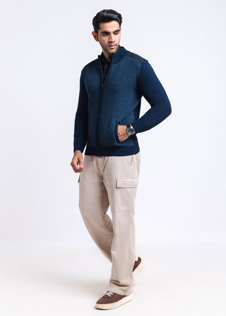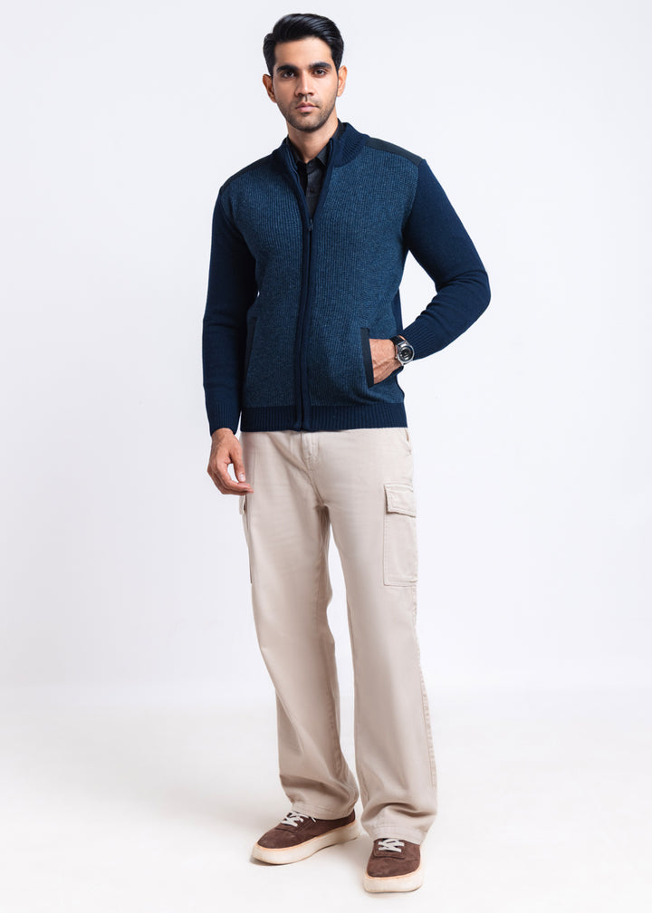 Dn-Blue-Turtle Neck Zipper Full Sleeves Sweater (907-14)