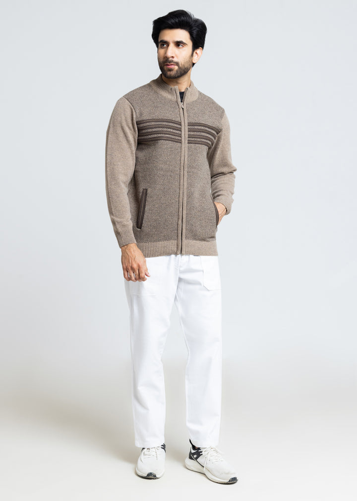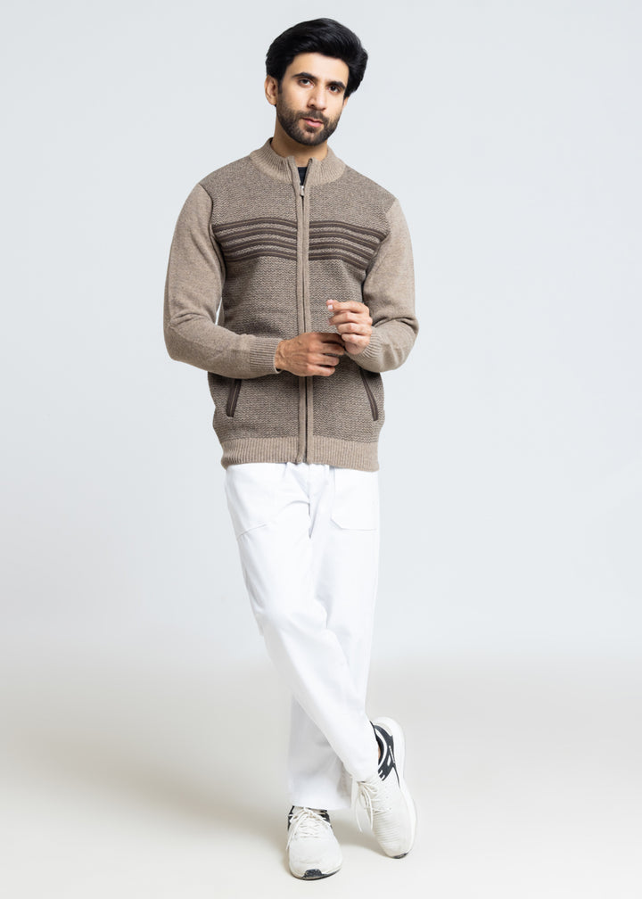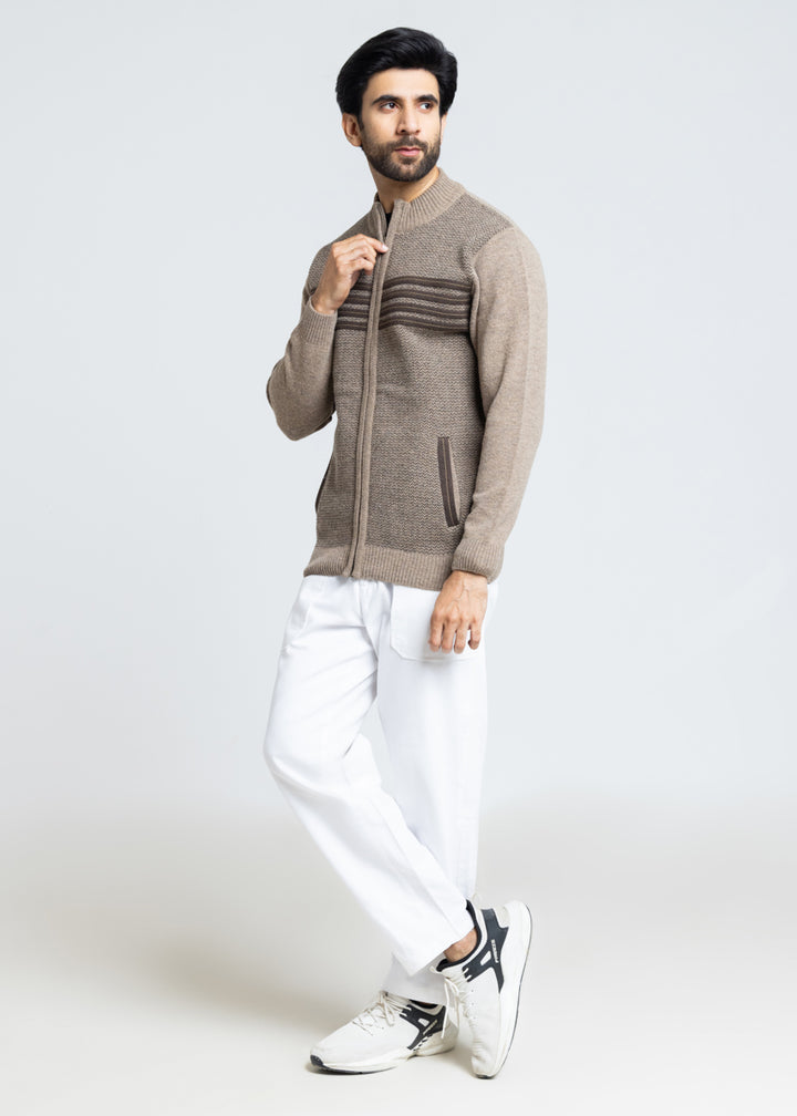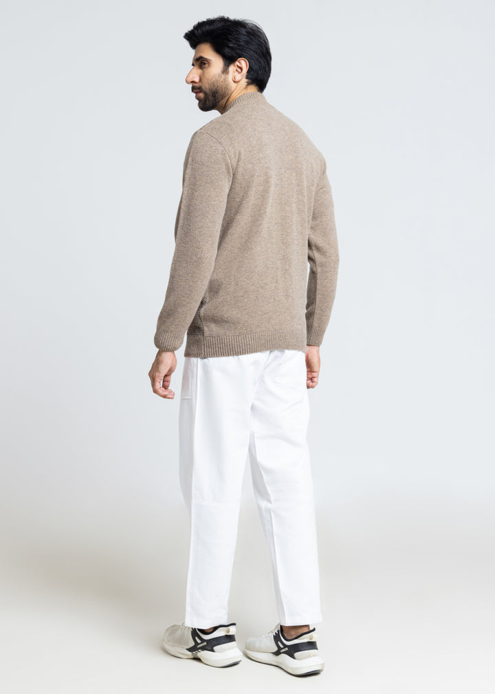 Walnut-Turtle Neck Zipper Full Sleeves Sweater (911-14)