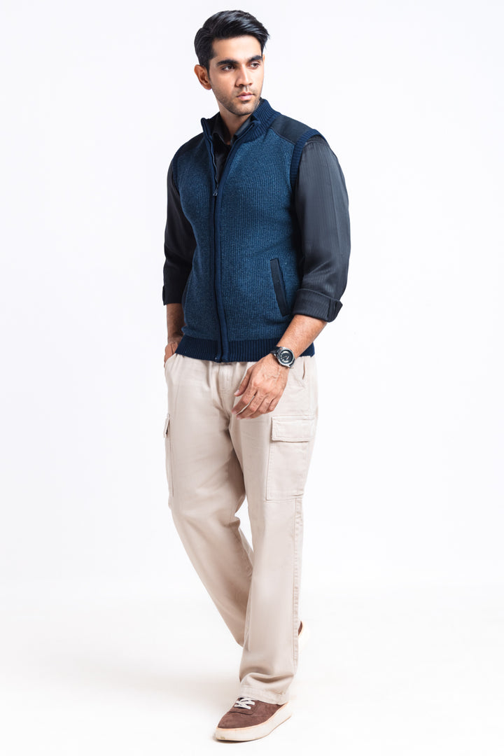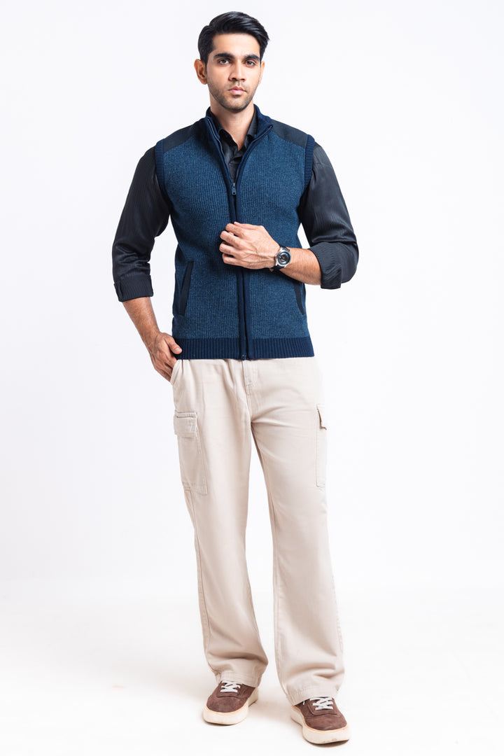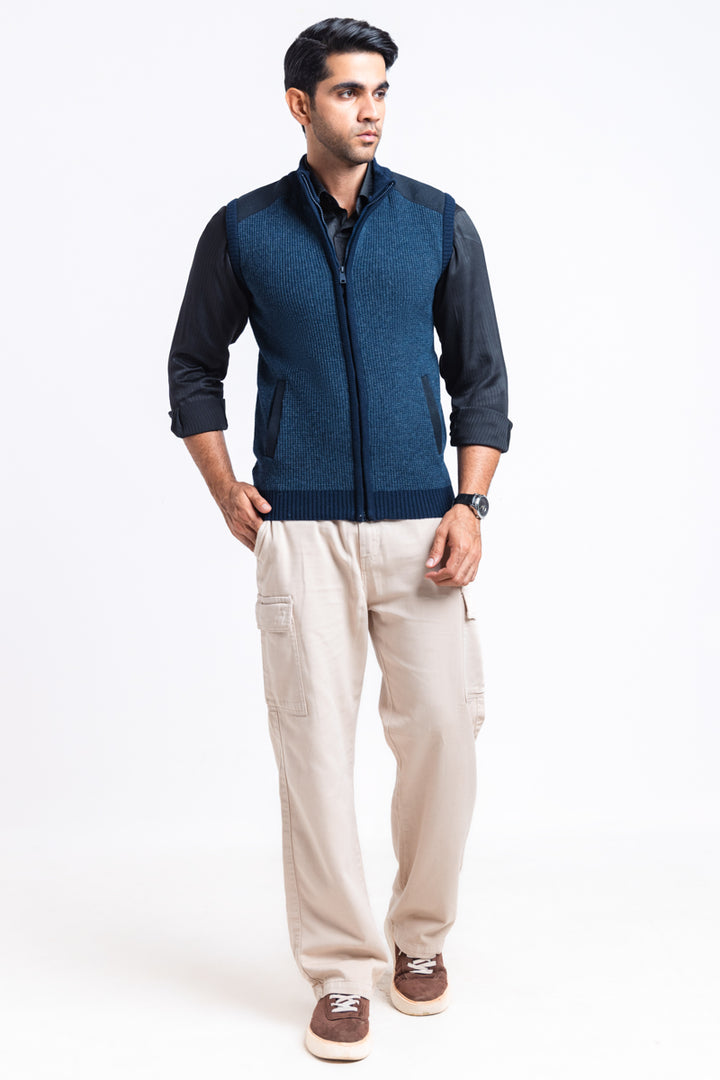 Dn-Blue-Turtle Neck Zipper Full Sleeves Sweater (987-14)