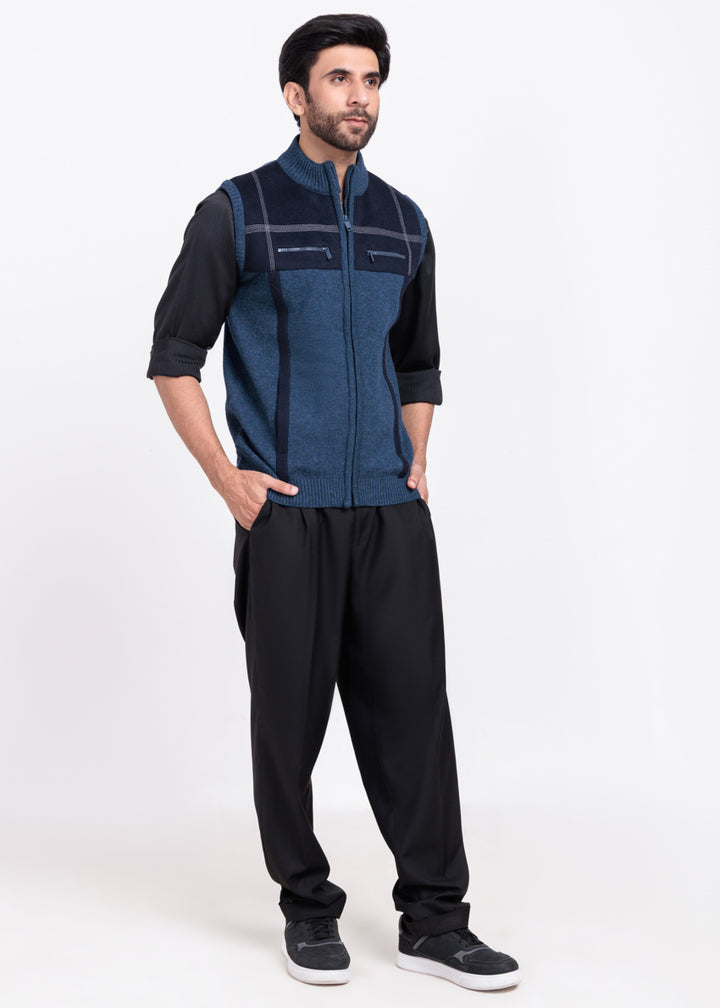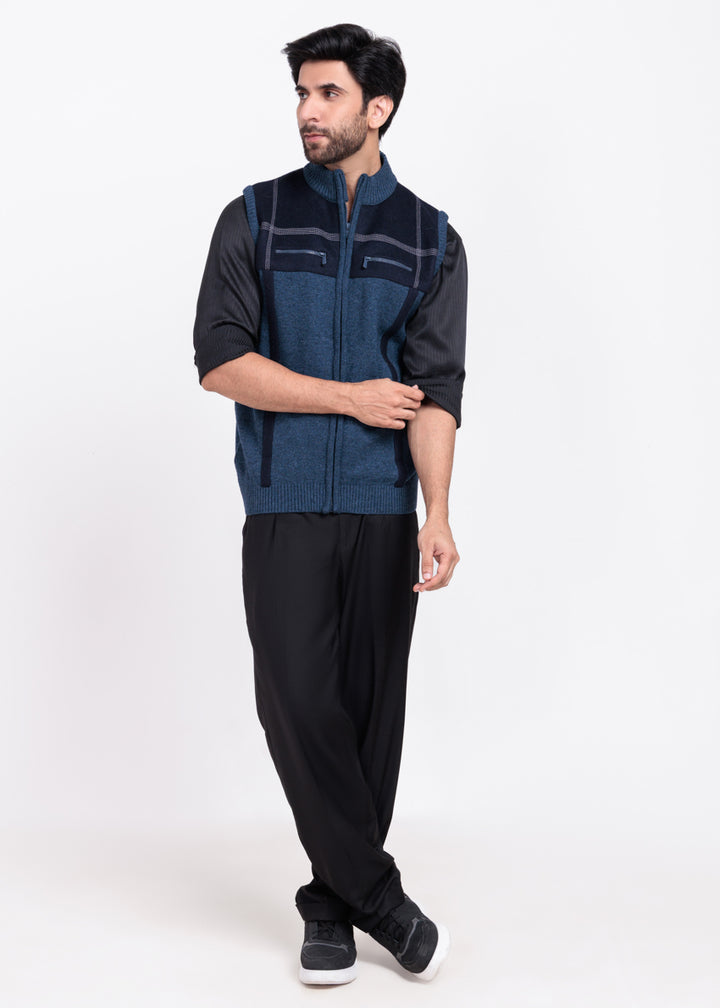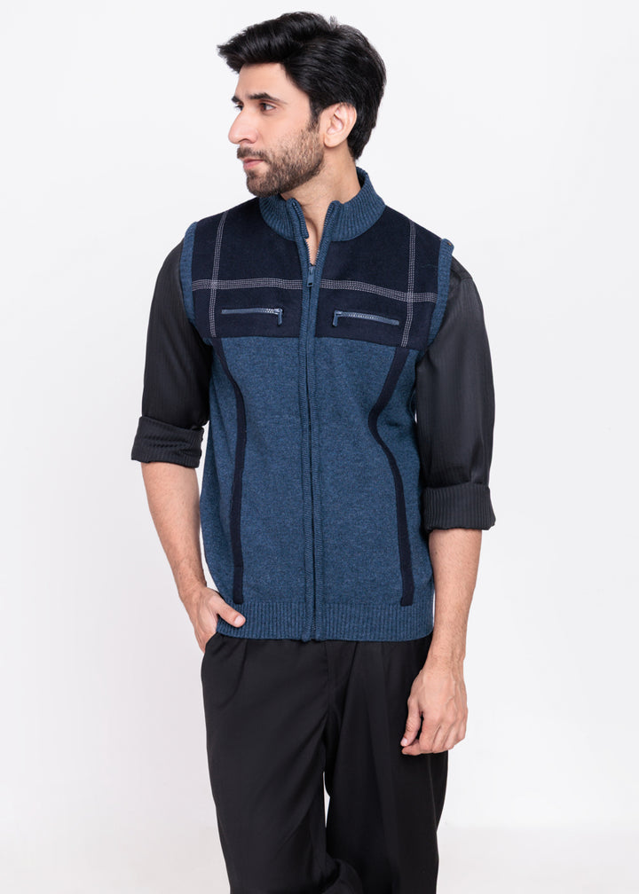 N-D-Blue-Gents Turtle Neck Zipper Sando Sweater (989-14)