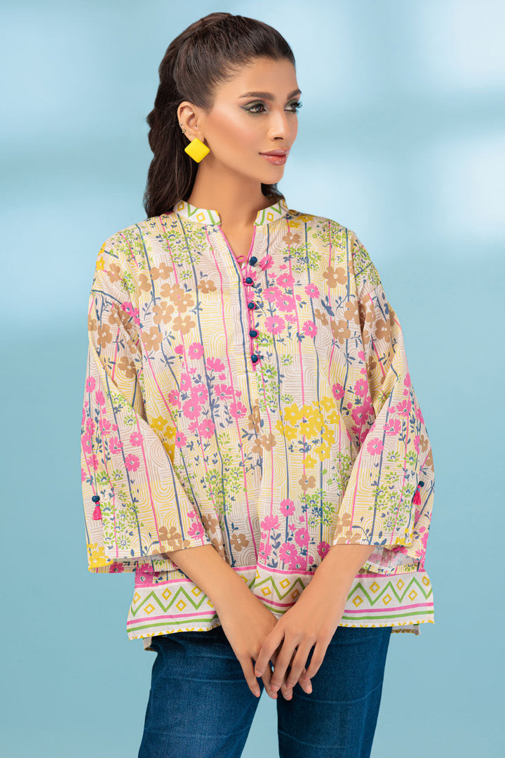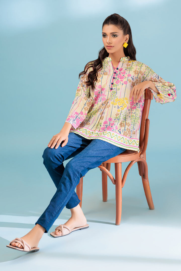 Digital Printed Lawn Shirt Having Boat Neckline With Buttons & Loop Details On Front, Embellishment On Choks.