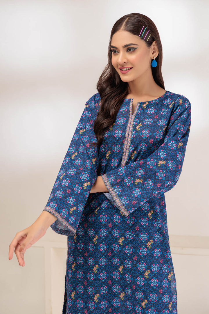 Digital Printed Cambric Shirt With Box Sleeves.