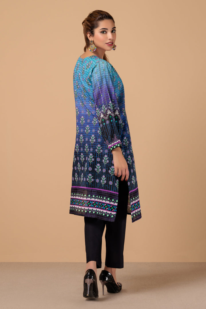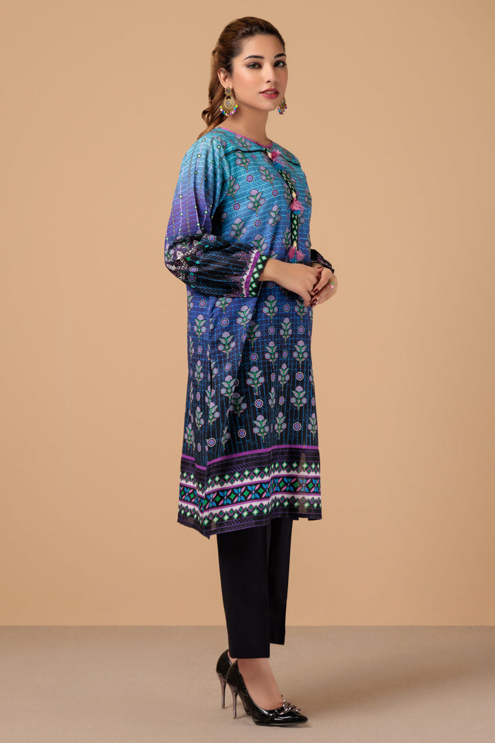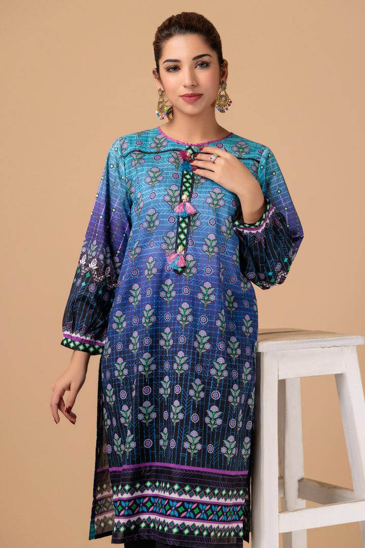 Digital Printed Lawn Kurti Styled With Lace & Tassels.