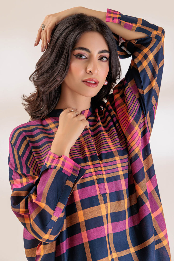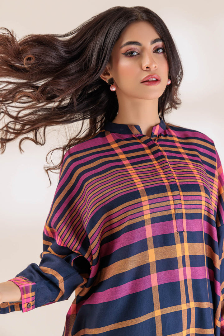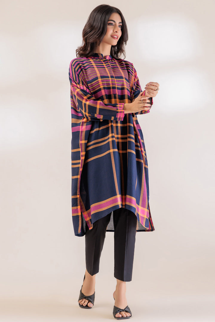 Yarn Dyed Drop Shoulder Box Cut Shirt With Cuffed Sleeves.