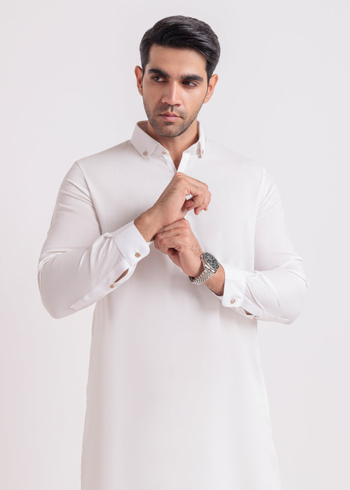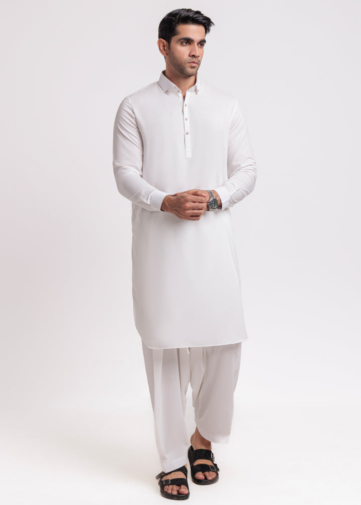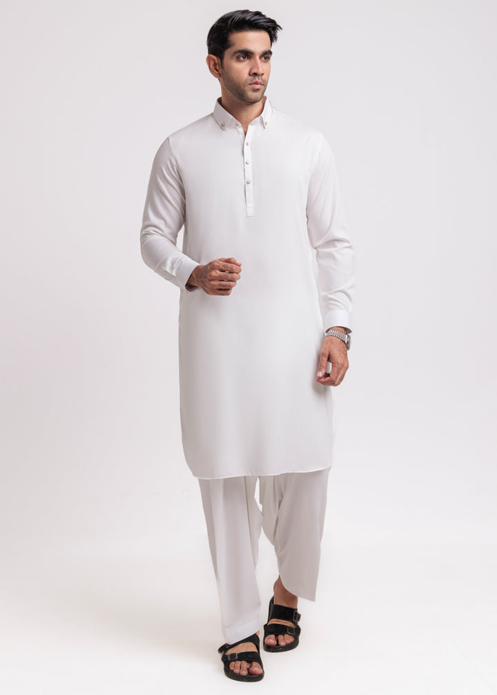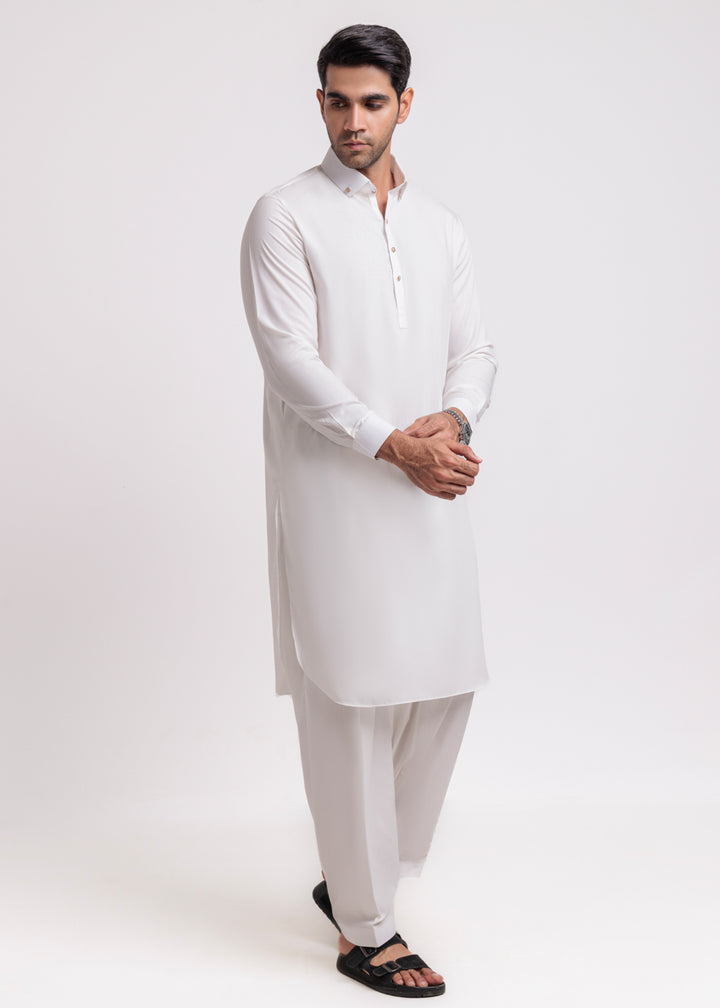 White-Blended-Shalwar Suit - (MPS25SSE2054)