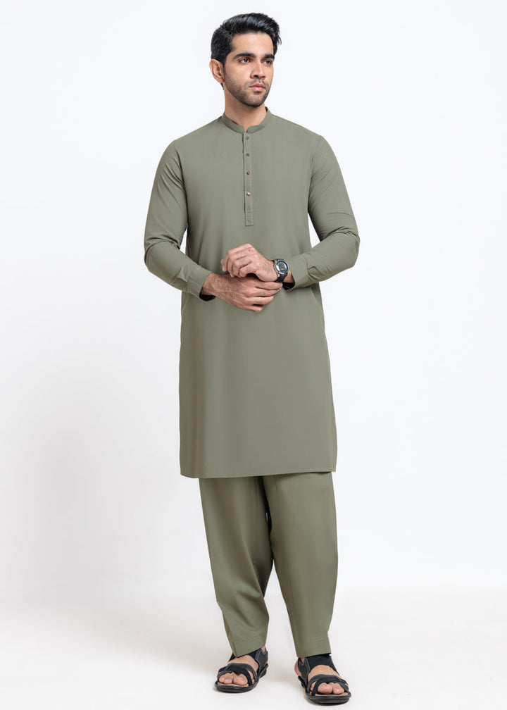 Mehandi-Blended-Shalwar Suit - (MPS25SSS2085)