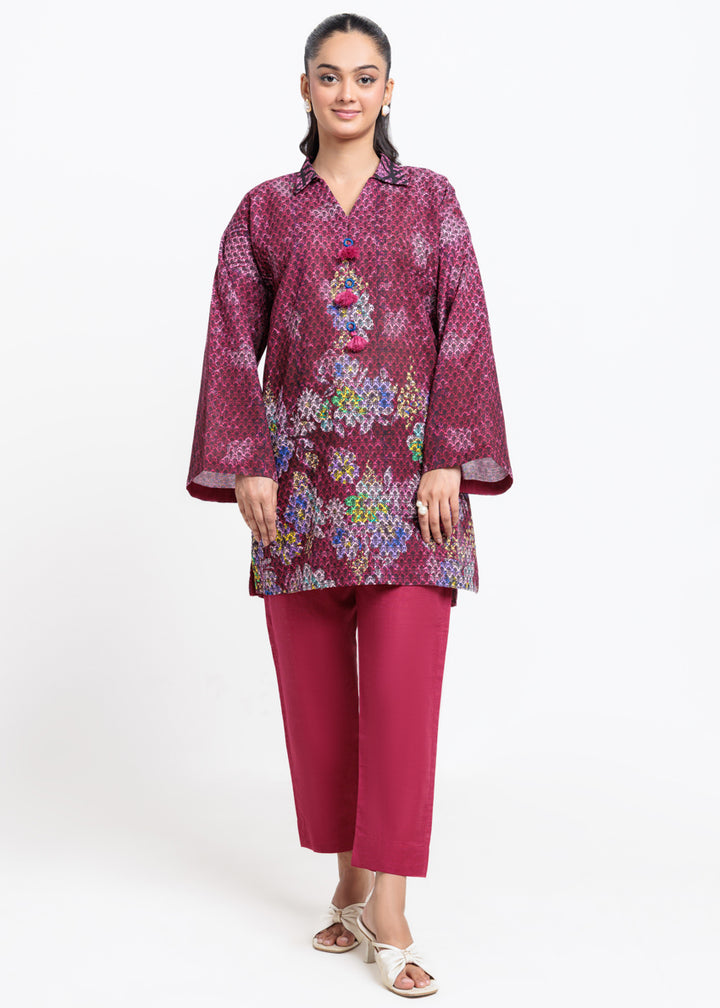 Printed Khaddar Drop Shoulder Loose Shirt.