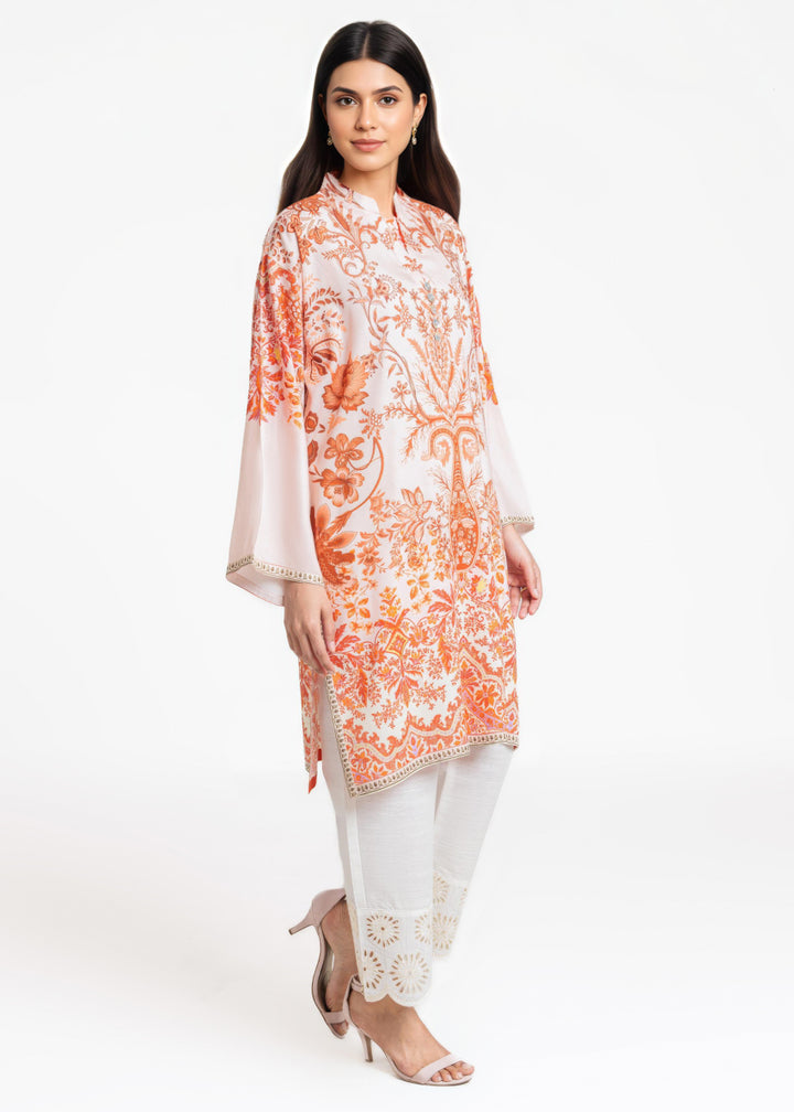 Printed Viscose Drop Shoulder Kurta With Button Details