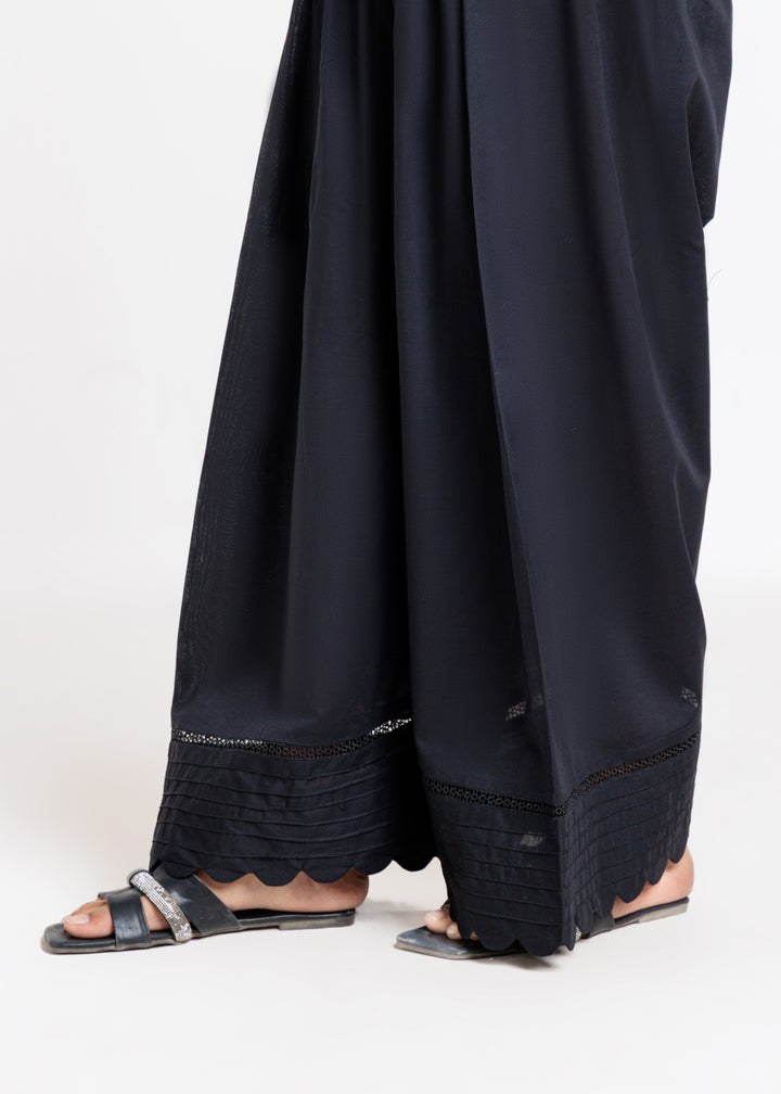 Dyed Cambric Wide Bottom Shalwar With Lace Finishing & Scalps.