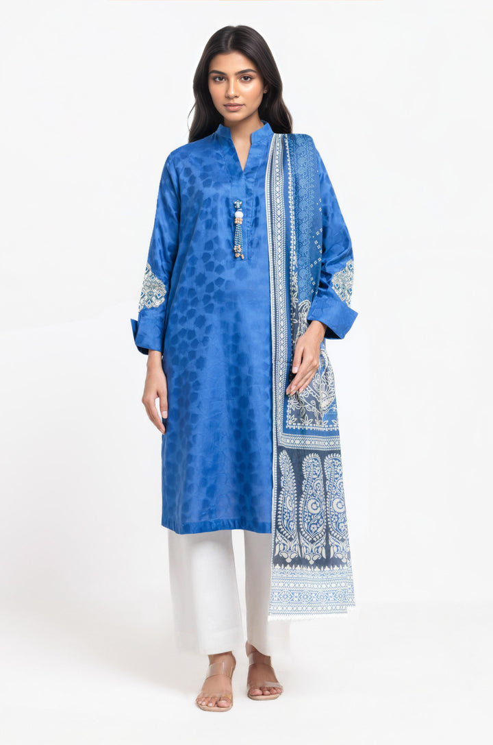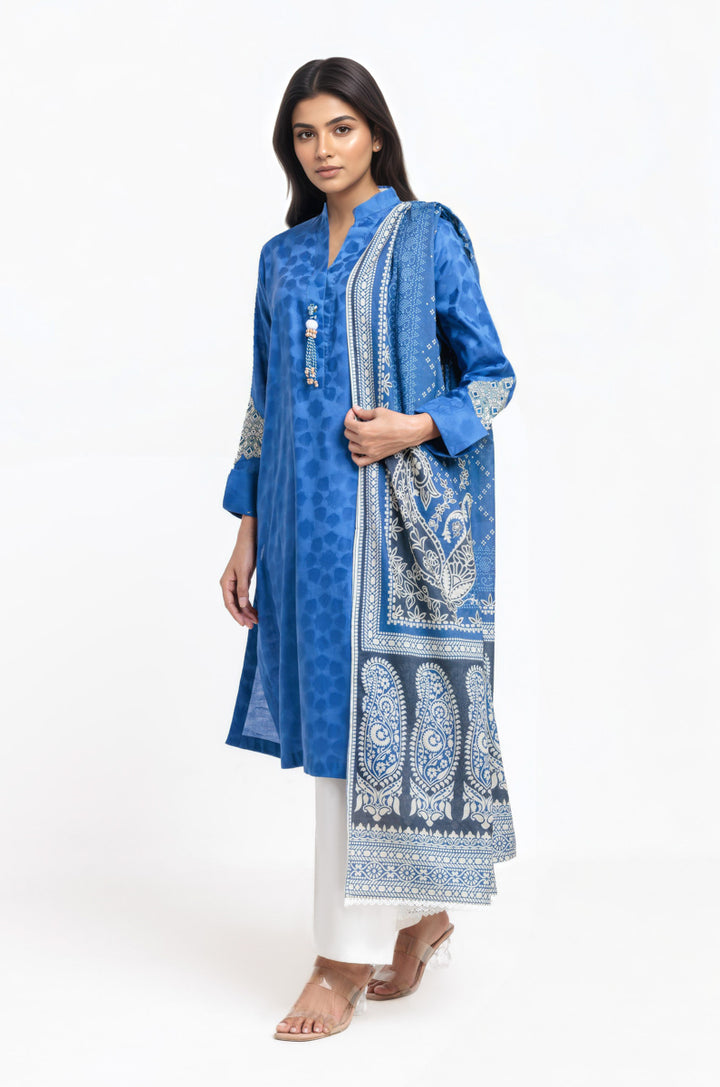 Dyed Self Jacquard Straight Shirt Embroidered Sleeves.