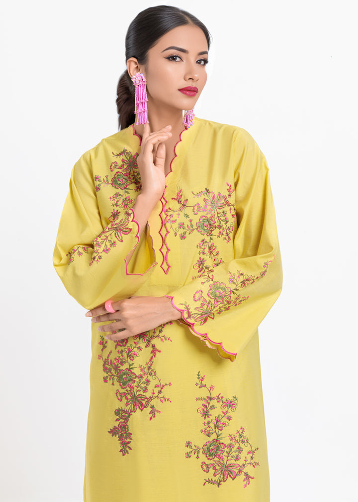 Dyed Cotton Silk Embroidered Straight Shirt.