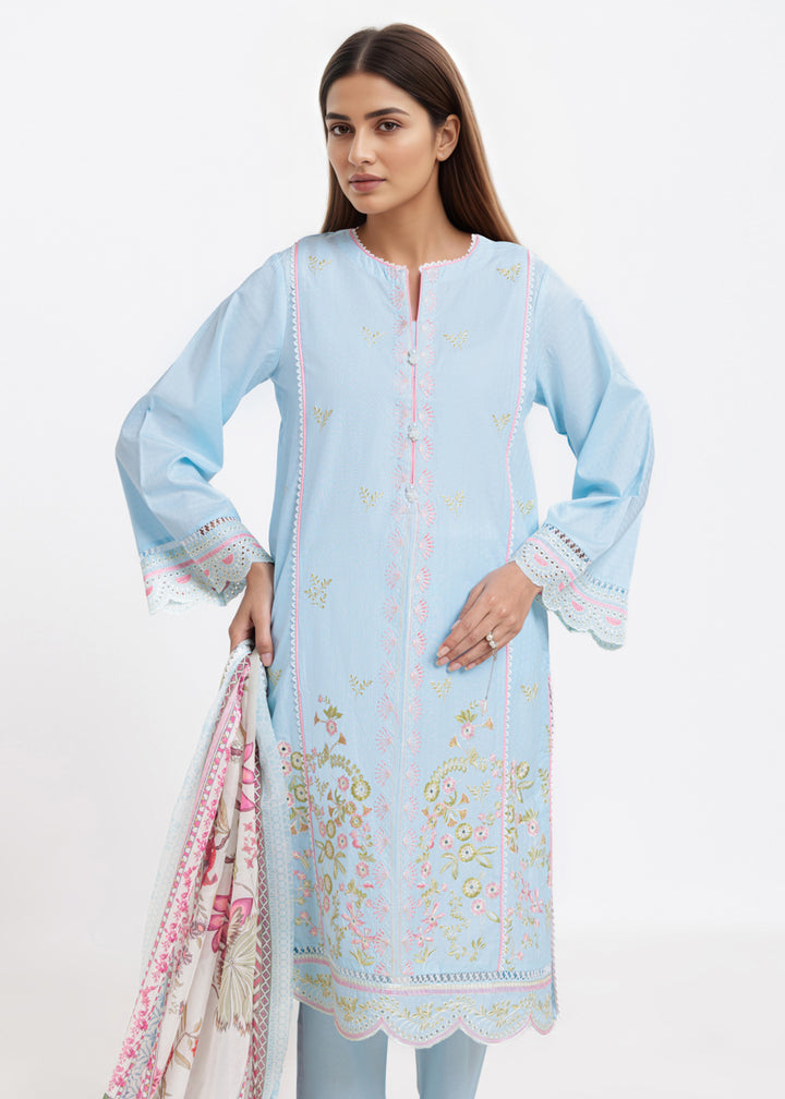 Dyed Self Jacquard Straight Embroidered Shirt.