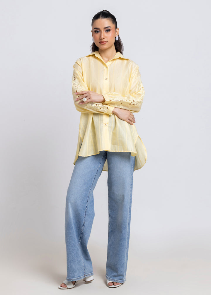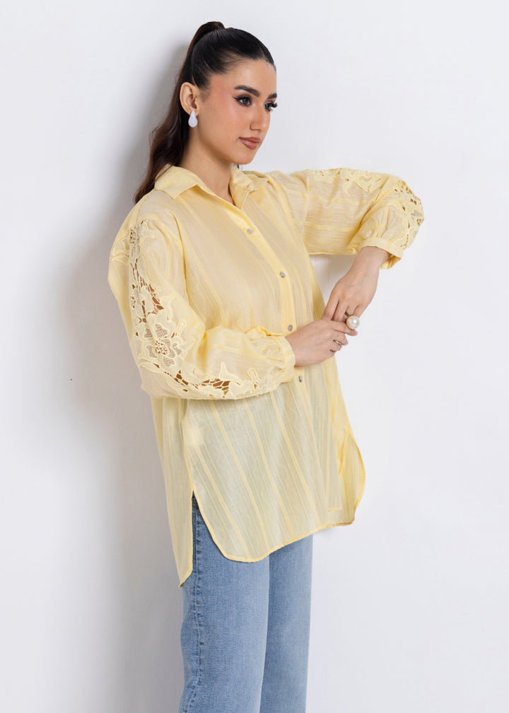 Dyed Self Jacquard Shirt with Lace Finishing & Buttons.