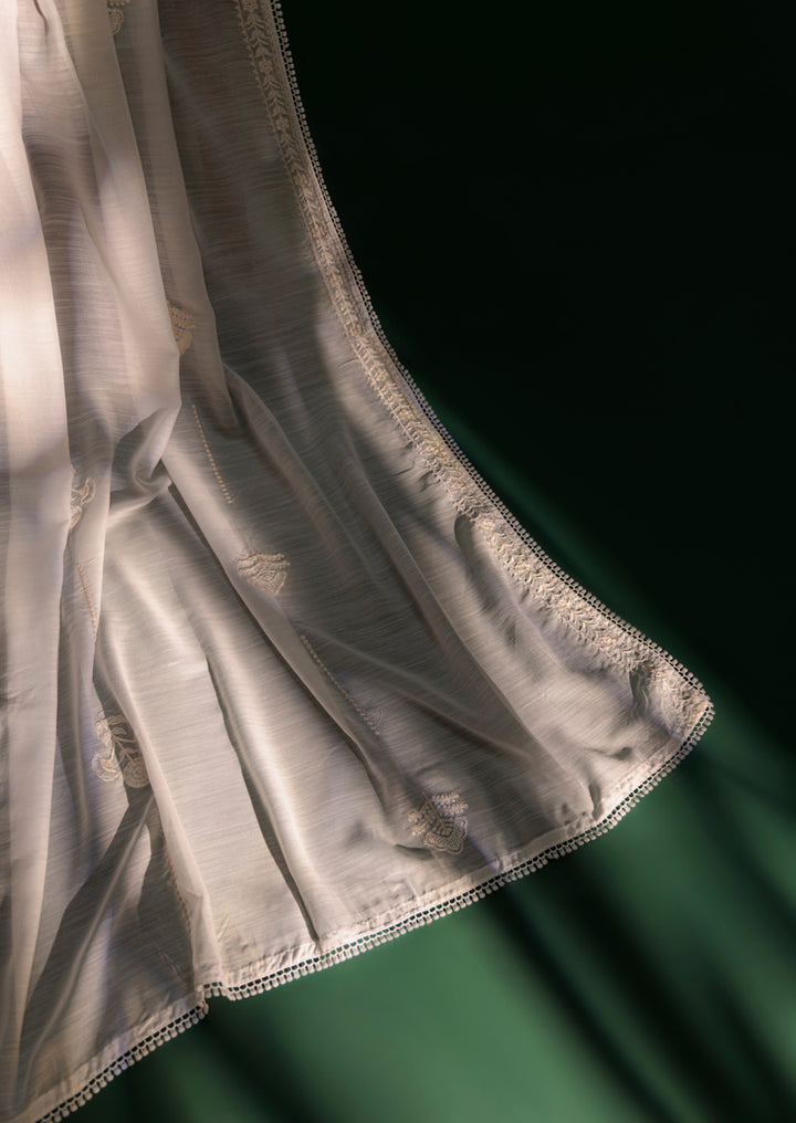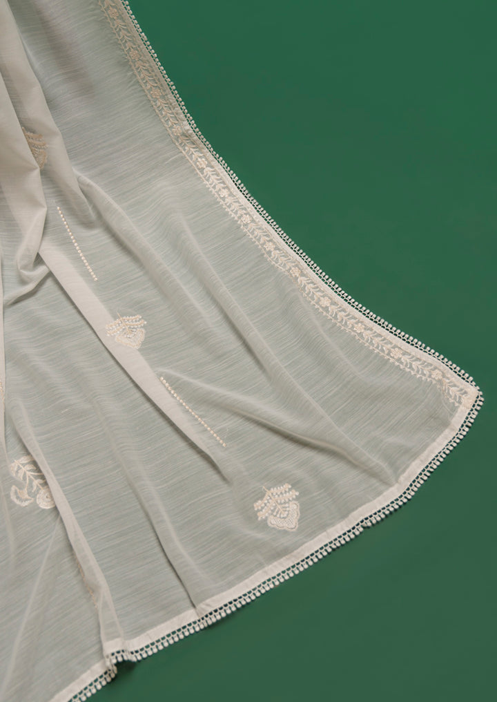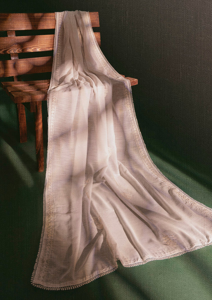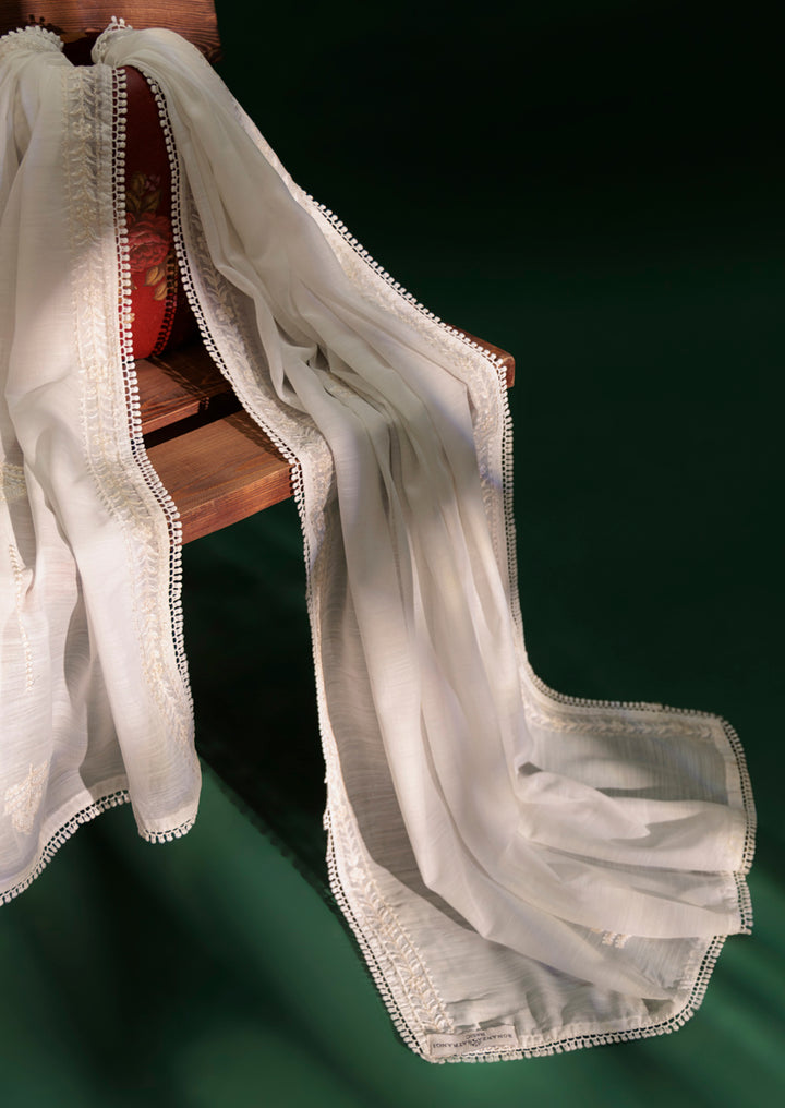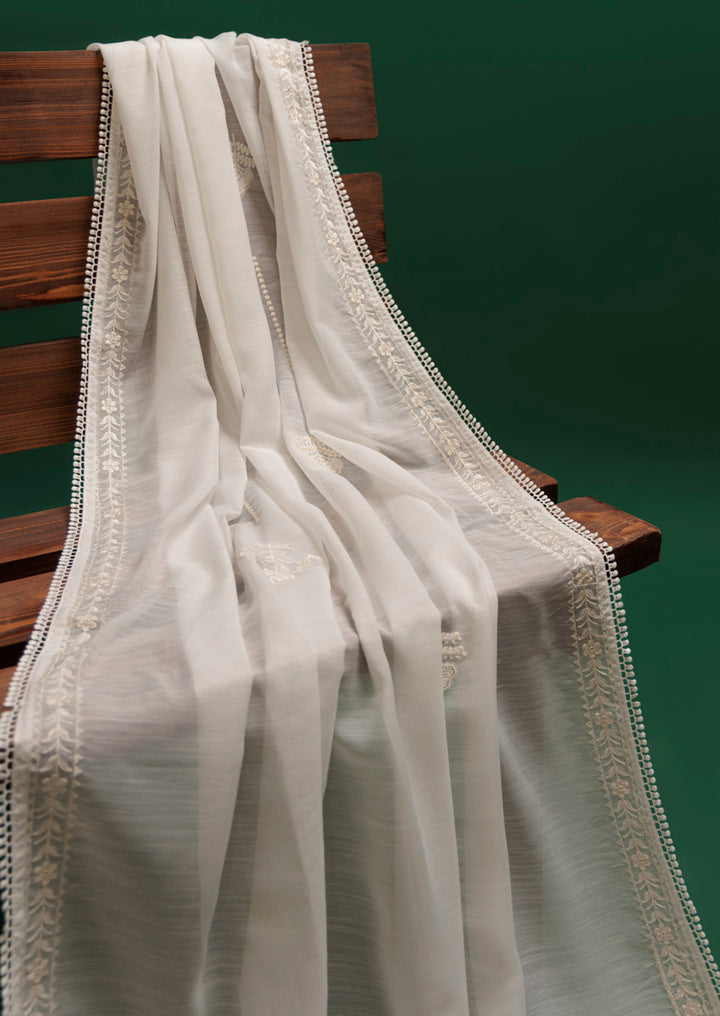 Embroidered White Voile Dupatta (WPS25VD1011)