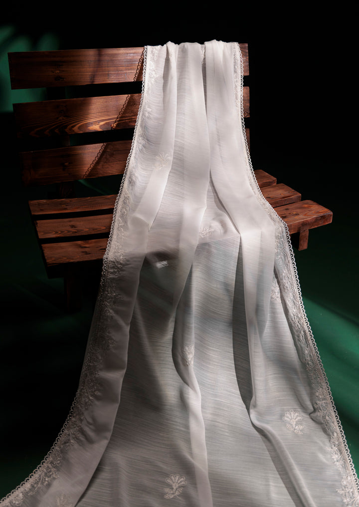 Embroidered White Voile Dupatta (WPS25VD1012)