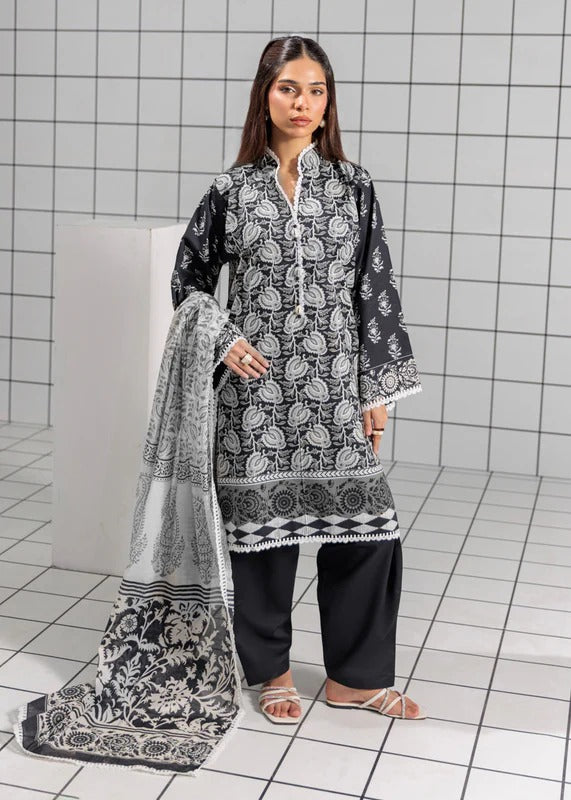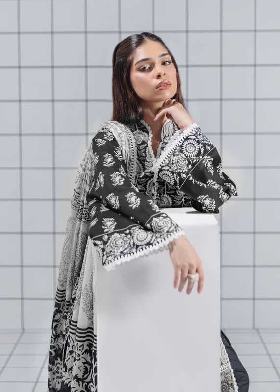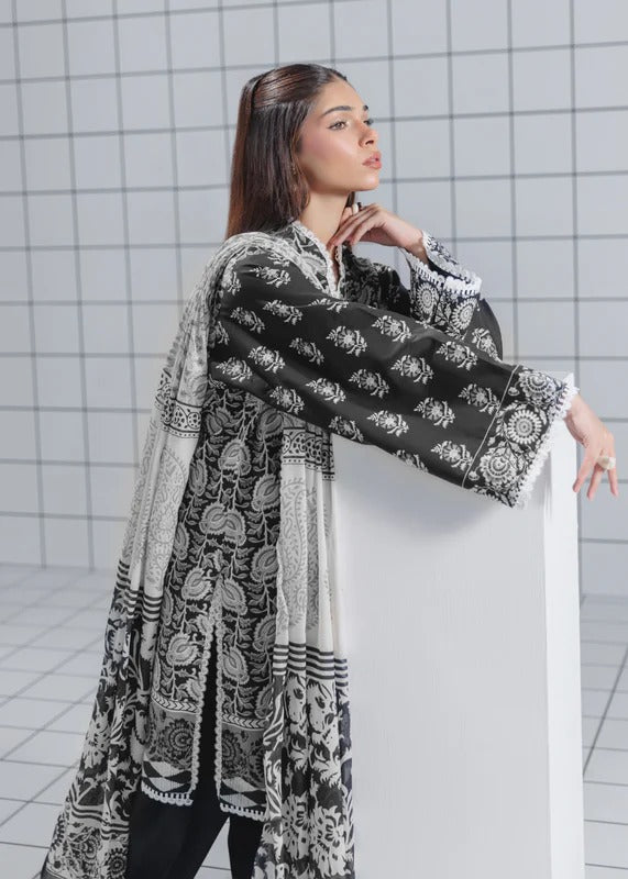 Celebrating the charm of traditional block printing, this 3-piece lawn suit features repetitive motifs and bold borders in a striking contrast palette. With its handcrafted appeal and breezy fabric, it offers a perfect blend of heritage and comfort for effortless summer wear.